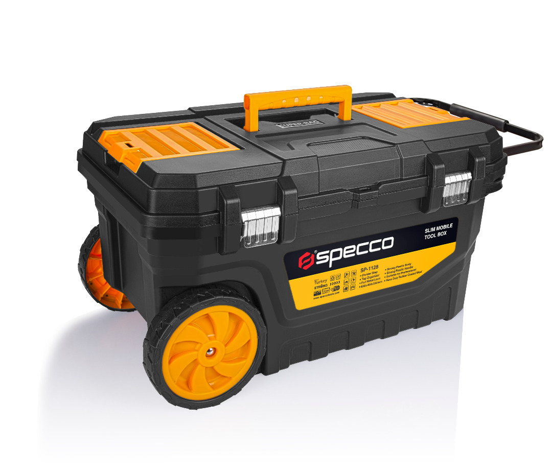 صندوق عدة بلاستيكي حجم صغير مزود بعجلات